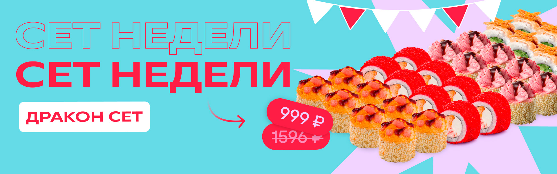 Каждую неделю новый эксклюзивный «Сет недели» по супер-цене! Только в будние дни до 17:00 вы можете попробовать уникальные сеты, которых нет в основном меню.